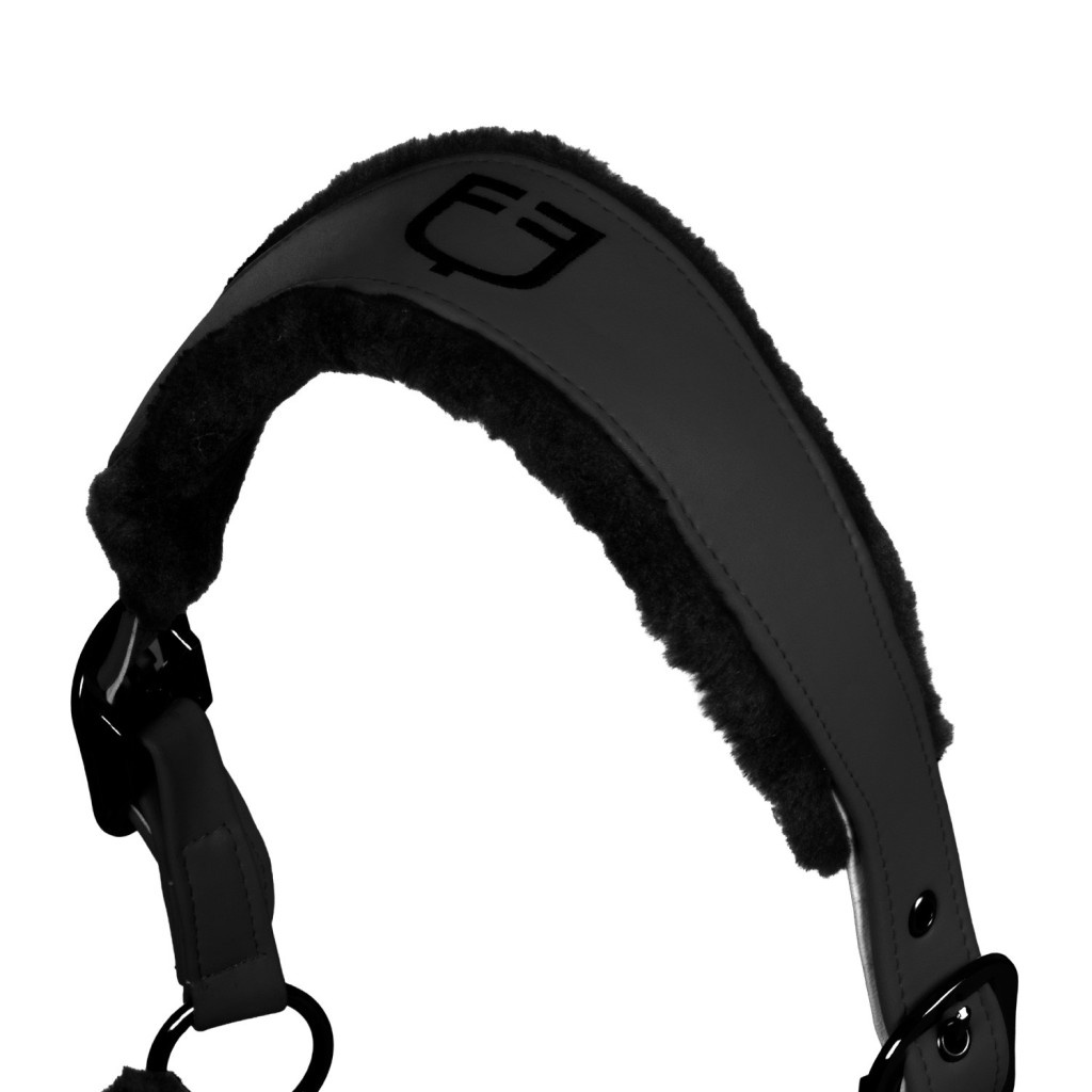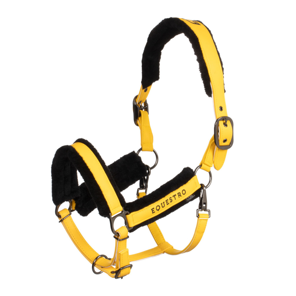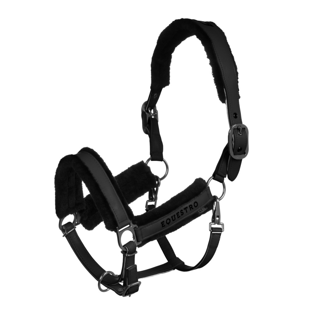 Căpăstru din nylon căptușit cu blană artificială moale de oaie în zonele predispuse la frecare și sensibilitate. Materialele de înaltă calitate oferă un confort incomparabil și o potrivire unică. Căpăstrul dispune de un sistem dublu de reglare cu catarame din oțel inoxidabil pentru siguranță, stabilitate și durabilitate, precum și o notă de eleganță rafinată. Design-ul reglabil și confortabil se mulează delicat pe gâtul și botul calului, oferind o potrivire personalizată și optimă. Ornat cu inscripția Equestro pe lateral și un logo pe tetieră.