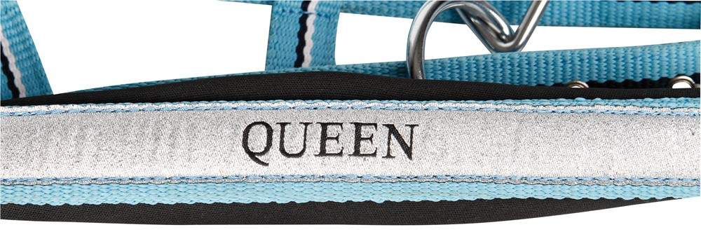 Se potrivește cu căpăstrul de mânz Harry's Horse, cu cuvântul „Regină” scris pe nas.