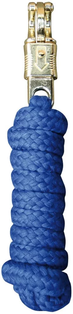 Lesă împletită cu carabină de panică de culoare aurie.