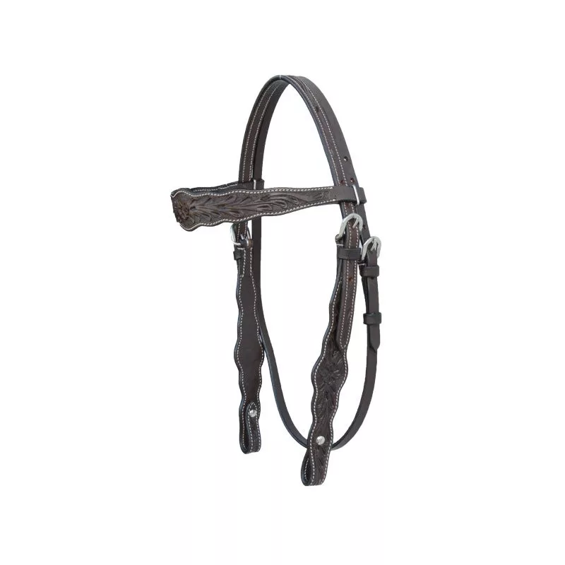 Căpăstru western individual și extravagant, realizat cu manoperă de înaltă calitate! Headstall-ul are o formă ondulată deosebită și este decorat cu un frumos model floral embosat.