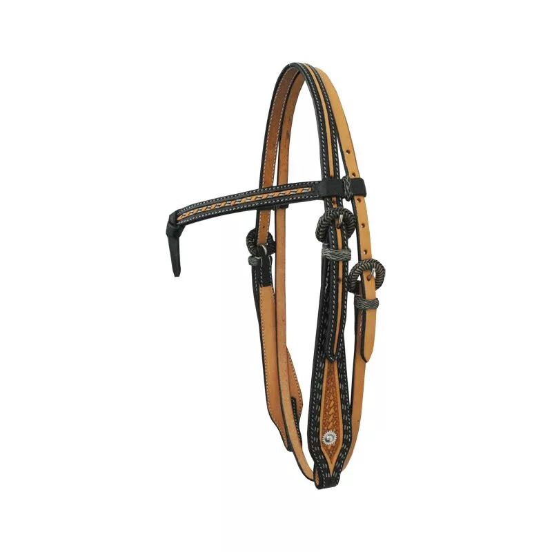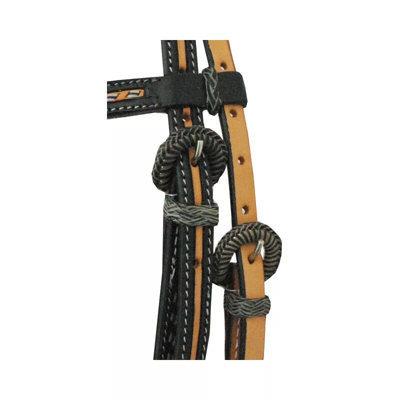 Ez a gyönyörű, kétszínű western kantár garantáltan irigykedő pillantásokat vonz. A kantár különleges, csomózott homlokszíjjal rendelkezik, a világos és sötét bőr kombinációja pedig igazán látványos megjelenést biztosít.